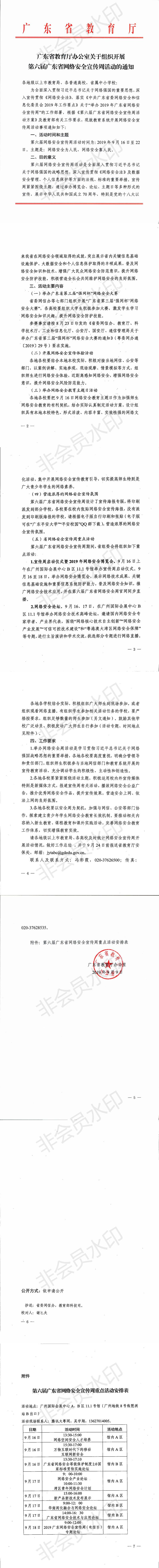 广东省教育厅办公室关于组织开展第六届广东省网络安全宣传周活动的通知