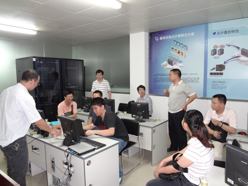 为了了解虚拟化技术在华南师范大学应用的情况并学习交流相关业务工作,5月25日(周五)信息中心在夏主任的带领下一行6人前往华南师范大学现代教育技术中心参观学习,受到了叶主任的热情欢迎和接待。
