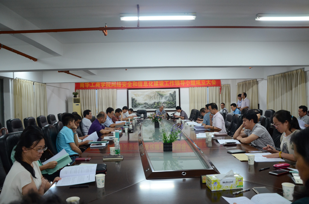 6月12日下午2:30,学院在天河校区综合楼十二楼大会议室召开网络安全和信息化建设工作领导小组成立大会,李河川书记、易江院长、王满元副院长及学院各部门领导参加了会议。
